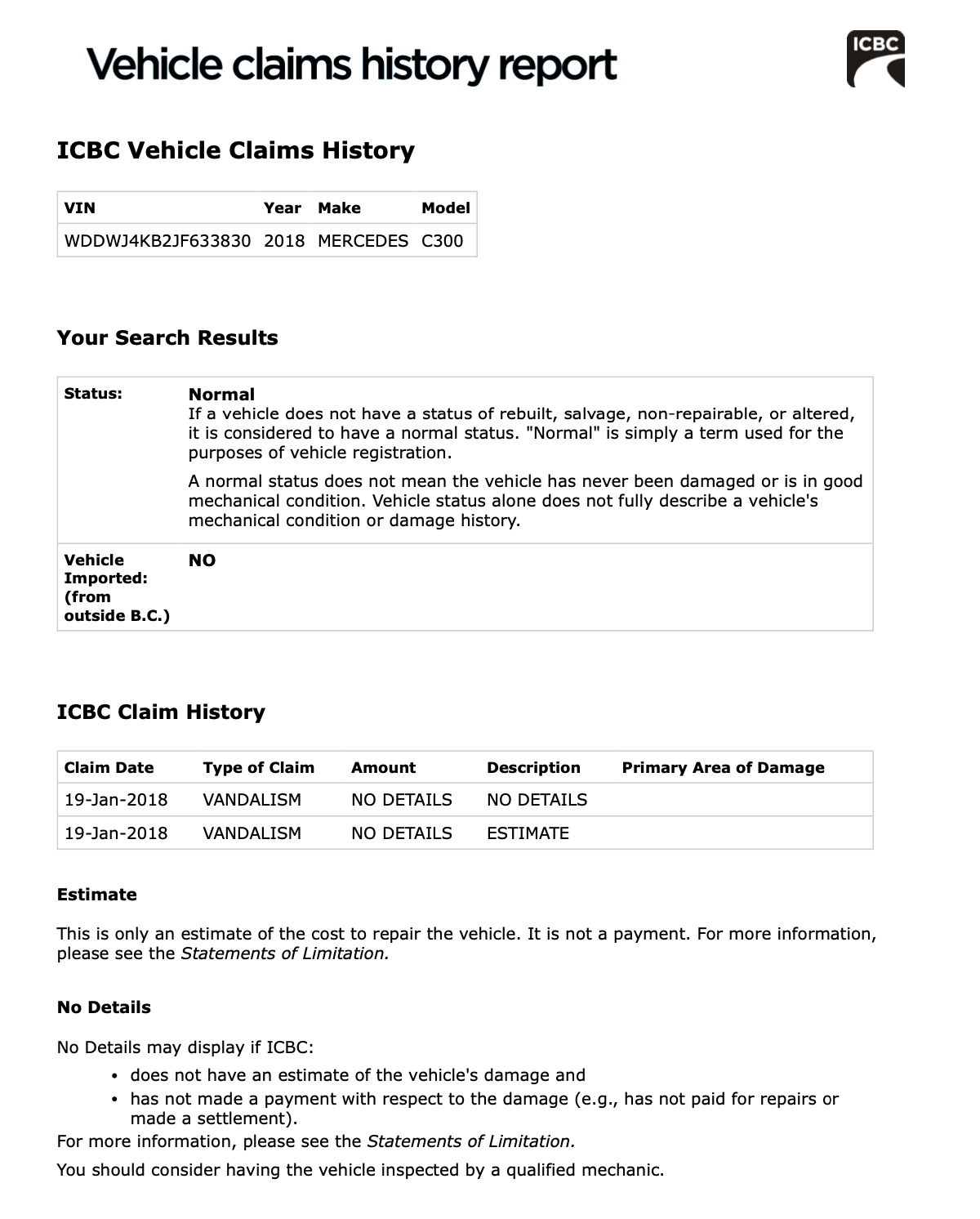 | Registration | BC LOCAL VEHICLE |